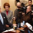 Nassau legislators Dennis Dunne, Sr. and David Denenberg advise North Hempstead Supervisor Jon Kaiman and the Town Board against diverting millions of gallons of Great Neck's wastewater to the county-run Cedar Creek Water Pollution Control Plant at a Nov. 17 meeting in Manhasset.