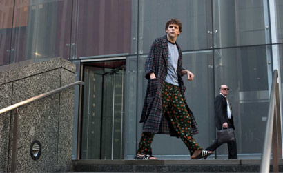 JE: I didn’t know what he looked like and I never heard him speak. But in order to feel more prepared and know who this guy was, I got my hands on every interview, and watched every video that was online. This is not so much a movie about Facebook, in the same way that this is not a traditional biopic, where I’m trying to do an imitation of him. I was really just focused on playing the director’s idea of Mark Zuckerberg.