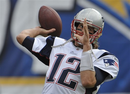 This Oct. 24, 2010, file photo shows New England Patriots quarterback Tom Brady throwing during an NFL football game against the San Diego Chargers, in San Diego. Patriots vs. Jets, both 9-2, is the game to watch on Monday Night Football this week. (AP Photo/Denis Poroy, File)