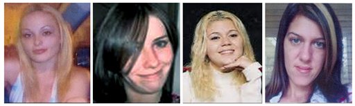 This combination of photos provided by the Suffolk County Police Department shows, from left, Melissa Barthelemy, of Erie County; Maureen Brainard-Barnes, of Norwich, Conn.; Megan Waterman, of Scarborough, Maine; and Amber Lynn Costello, of North Babylon. (AP Photo/Suffolk County Police Department)