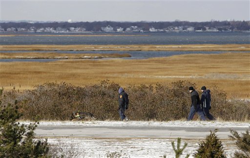 Authorities search in the brush by the side of the road at Cedar Beach, near Babylon, N.Y., Tuesday, Dec. 14, 2010. (AP Photo/Seth Wenig)