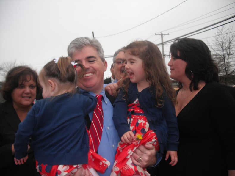 Town of Babylon Supervisor Steve Bellone with his two daughters and wife Tracey
