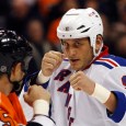 He had seven fights with the Rangers. His lone goal of the season was scored at home against Washington on Nov. 9. That ended a drought of 234 games he played without a goal, dating to Jan. 7, 2006. It was the longest streak without a goal in the league.