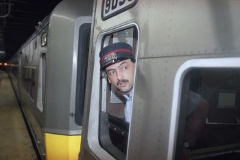 Long Island Railroad Conductor Eric McCourt prepares to pull away from the platform on the 12:19 a.m. train headed for Port Washington, in New York?s Penn Station, Thursday, June 16, 1994. (AP Photo/Adam Nadel)