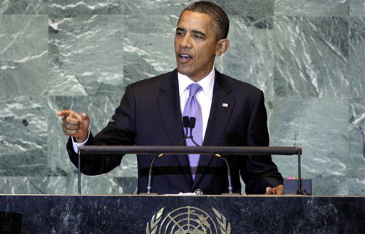 President Barack Obama addresses the 66th session of the United Nations General Assembly, Wednesday, Sept. 21, 2011. (AP Photo/Richard Drew)