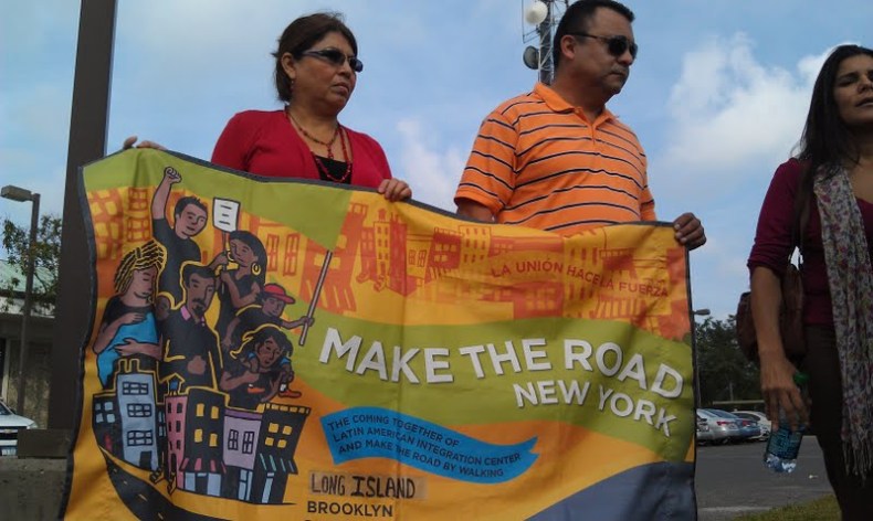 New York Communities for Change led the group, who described continued incidents of difficulty in the Hispanic community dealing with police a week after the Department of Justice wrote a 28-page letter to County Executive Steve Levy offering advice on improving hate crimes investigations.