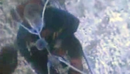 This framegrab image provided by the U.S. Coast Guard shows one of three crew members from the yacht Low Speed Chase being rescued from the Farallon Islands west of San Francisco Saturday April 14, 2012 by the U.S. Coast Guard. The sail boat carrying eight crew members ran aground during a race off San Francisco Saturday, killing one person and leaving four others missing, the Coast Guard said. (AP Photo/US Coast Guard)