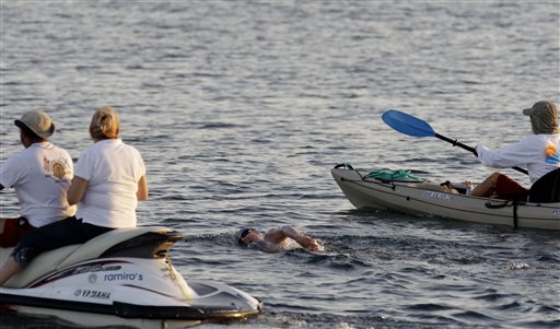 At last report about 10 p.m. EDT Saturday (0200 GMT Sunday) — roughly 39 hours into the swim — Palfrey was 79 miles (127.13 kilometers) from her starting point at a marina in the Cuban capital, according to an online GPS tracking report. She was positioned about 28 miles (45.06 kilometers) south, southwest of Key West.